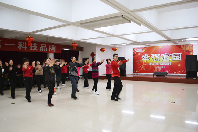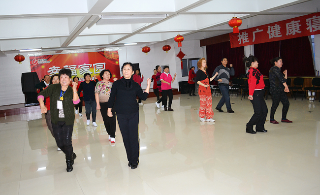 最早趕到康姿百德公司排練場地的是16位伴舞人員,都是50歲以上的中老年人。她們從早晨8點半開始便投入了一遍又遍地排練。每排練一遍,舞蹈老師都會進行細微的糾正、調整隊形和調動情緒。每位健身操隊員也沒有因為反復的走位表現(xiàn)出疲憊或煩躁,始終面帶笑容,激情勃勃的投入排練。因為投入的運動量非常大,很多人都是滿頭大汗,演員們就索性脫下厚實的棉衣輕裝上陣。