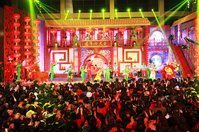 2013年1月3日晚,盧龍縣體育館內(nèi)張燈結(jié)彩,嘉賓滿座,笑語滿堂,中央電視臺《過年七天樂》節(jié)目在這里開機錄制。央視“名嘴”老畢的幽默風趣,賺盡現(xiàn)場3000多名觀眾的歡聲笑語,三個半小時的節(jié)目錄制圓滿成功。