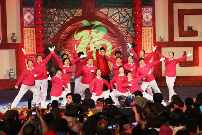 著名女高音歌唱家李丹陽的音色甜美清新,舞臺形象優(yōu)雅大方,是深受聽眾喜愛的歌唱藝術(shù)家。她與康姿百德公司董事長即興對唱《敖包相會》獲得了滿堂喝彩。隨后,李丹陽為“畢姥爺”獻上了一道健康大菜——秦皇島出品的正能量紅歌《最美中國人》。演唱者是90后網(wǎng)絡歌手楊德朗,以風靡全國的《康姿百德健身操》伴舞,清新陽光的曲風、舞風,滌蕩著人們的心靈。