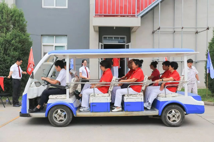接下來大家乘坐觀光車,滿懷期待地參觀了康姿百德自動化生產(chǎn)線,觀摩產(chǎn)品的生產(chǎn)流程。