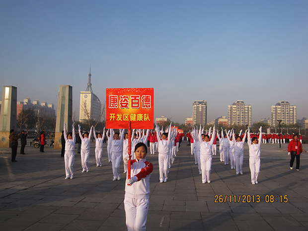 11月26日,安陽(yáng)市東區(qū)圖書(shū)館、博物館兩個(gè)廣場(chǎng)上,五彩斑斕,熱鬧非凡,由安陽(yáng)市康姿百德健身俱樂(lè)部主辦的康姿百德第一套健身操展演活動(dòng)在這里熱烈舉行。 上午8時(shí),來(lái)自文峰區(qū)、北關(guān)區(qū)、殷都區(qū)、龍安區(qū)、開(kāi)發(fā)區(qū)的近600名康姿百德健身愛(ài)好者,組成15個(gè)代表隊(duì),一一入場(chǎng),拉開(kāi)了展演比賽的帷幕。廣場(chǎng)上,所有表演隊(duì)員的熱情與自信溢于言表,大家身著統(tǒng)一的服裝,排著整齊的隊(duì)伍,在輕快明朗的音樂(lè)聲中,伸臂、扭頭、踏步、擺臀,為這個(gè)季節(jié)帶來(lái)了無(wú)限的生機(jī)與活力,更把公司“全民健身·快樂(lè)同行”的健康理念傳遞給了更多的人們。 生活因運(yùn)動(dòng)而快樂(lè),人生因健康而精彩。參賽隊(duì)員中,78歲的老人劉金榮,雖然已過(guò)古稀之年,但對(duì)康姿百德健身操卻情有獨(dú)鐘,由于養(yǎng)成了每天堅(jiān)持跳操鍛煉的良好習(xí)慣,腿腳利索,精神矍鑠,讓人羨慕不已。如今,在安陽(yáng),像劉金榮這樣的老人還有很多,大家都是康姿百德健身操的愛(ài)好者和受益者,每天活躍在不同的廣場(chǎng)上,成為一道亮麗的風(fēng)景線(xiàn)。 據(jù)悉,安陽(yáng)康姿百德健身俱樂(lè)部舉辦的這次第一套健身操展演,是他們今年繼8月15日第二套健身操展演之后,組織的又一次較大規(guī)模的活動(dòng),也是公司9.12活動(dòng)以后,全國(guó)地級(jí)市中首次組織的健身操集體展演,對(duì)于我們進(jìn)一步深入開(kāi)展全民健身活動(dòng)、推廣普及康姿百德健身操,都將產(chǎn)生十分積極的意義。