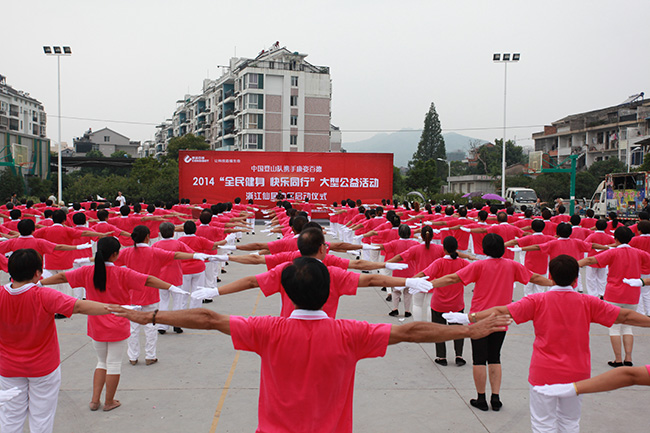 8月8日一大早,為迎接第六個“全民健身日”的到來,浙江仙居廣大市民相約來到城區(qū)西門,伴隨著優(yōu)美的樂曲,共同舞起康姿百德健身操,向人們展示激情與活力。動聽的音樂、優(yōu)美的舞姿,引得行人不時駐足觀看,開心幸福的笑容蕩漾在每個人的臉上,全民健身的理念也深深扎根于每個人的心中。 本次活動得到了當?shù)赜嘘P部門和新聞媒體的關注,仙居電視臺進行了現(xiàn)場采訪,并于當晚在仙居綜合頻道播出。