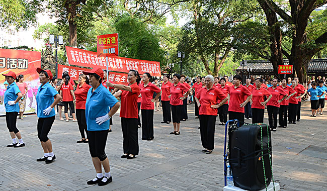 2014年 8月3日,為迎接第5個“全民健身日”的到來和第14屆江西省省運會在贛州市舉行,贛州市章貢區(qū)體育局聯(lián)合贛州康姿百德戶外健身營共同舉辦了“迎省運全民健身日”活動。 由贛州康姿百德戶外健身營160多名成員組成的七個健身操表演方隊和一個康姿百德女子舞蹈隊,在健身操、舞蹈、武術、太極拳等展演中最為引人注目,對宣傳立體健康、助推全民健身、提高康姿百德的社會影響力起到了積極作用。 江西七臺、贛州電視臺等新聞媒體,對本次活動進行了現(xiàn)場采訪,其活動新聞將于近期在上述各臺新聞節(jié)目中播出。