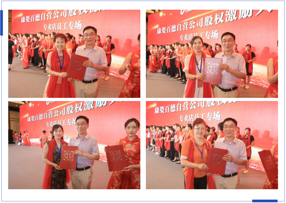 為了獎勵專賣店員工在服務客戶等方面做出的貢獻,同時踐行“以奮斗者為本”的企業(yè)文化,康姿百德對一部分優(yōu)秀的專賣店員工授予了股權(quán)激勵的機會,幫助他們加入到“集體創(chuàng)業(yè)”的平臺當中,成為公司的主人,共享公司的發(fā)展成果。相信在這些榜樣的引領(lǐng)下,會有更多優(yōu)秀的專賣店員工能夠獲得股權(quán)激勵的機會,壯大康姿百德營銷隊伍,為實現(xiàn)“讓科技造福生命”的企業(yè)使命保駕護航。