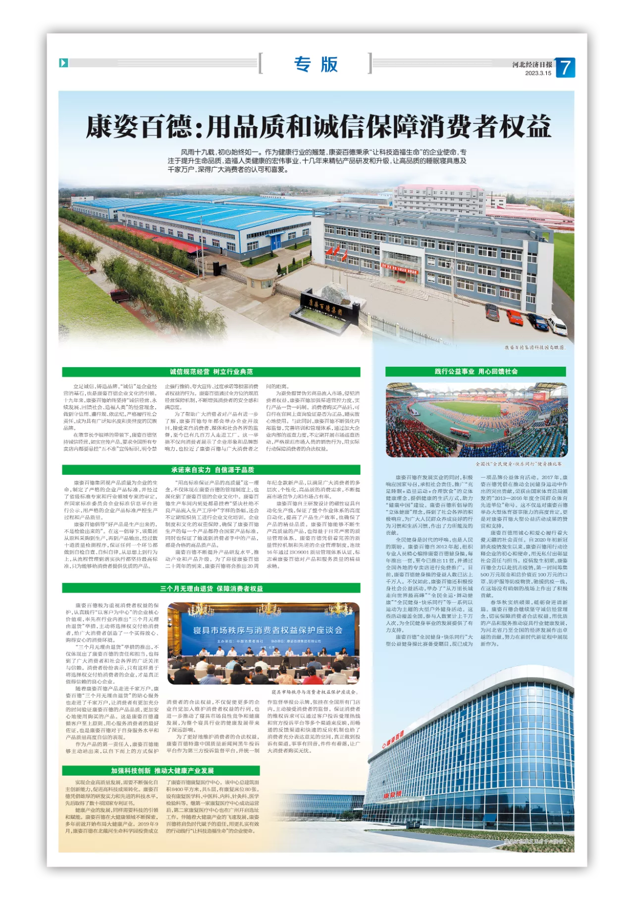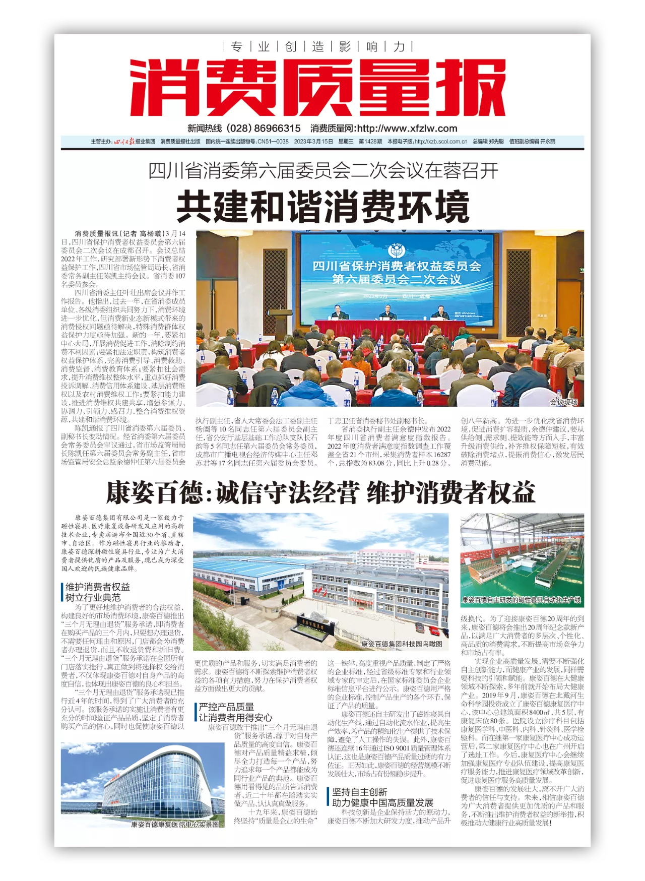 “3·15”國際消費者權益日,康姿百德以誠信經營、積極維護消費者合法權益的良好社會形象,連續(xù)7年榮登《中國消費者報》。這充分說明,康姿百德在誠信自律、維護消費者合法權益等方面的努力和付出,得到了社會各界的高度肯定和廣泛認可。