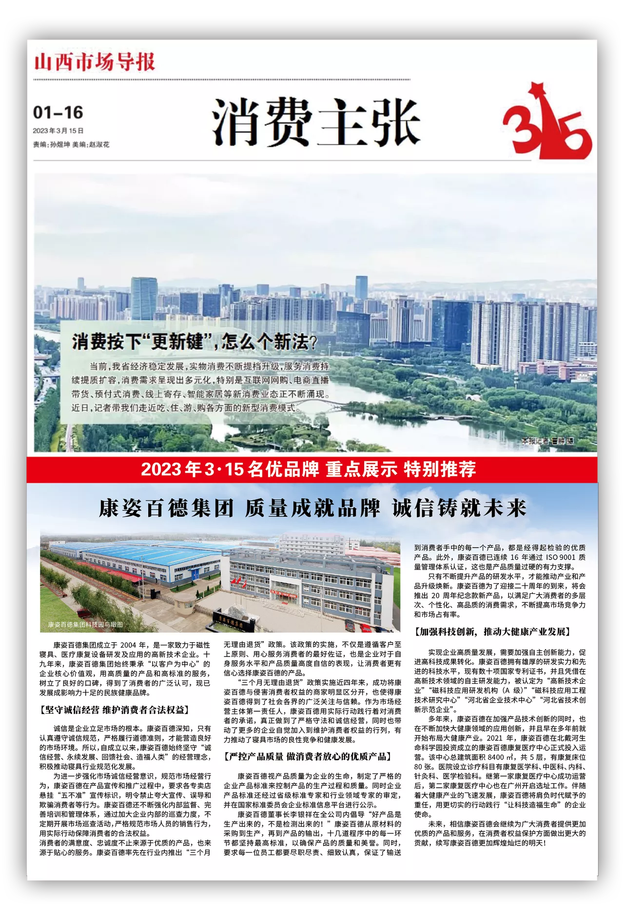 3·15消費者權益日,康姿百德又一次憑借在誠信經營和維護消費者合法權益方面做出的突出貢獻,受到了中國消費者報、市場監(jiān)督管理雜志、河北經濟日報、山西市場導報、遼寧電視臺等多家權威媒體全方位、多視角的爭相報道。