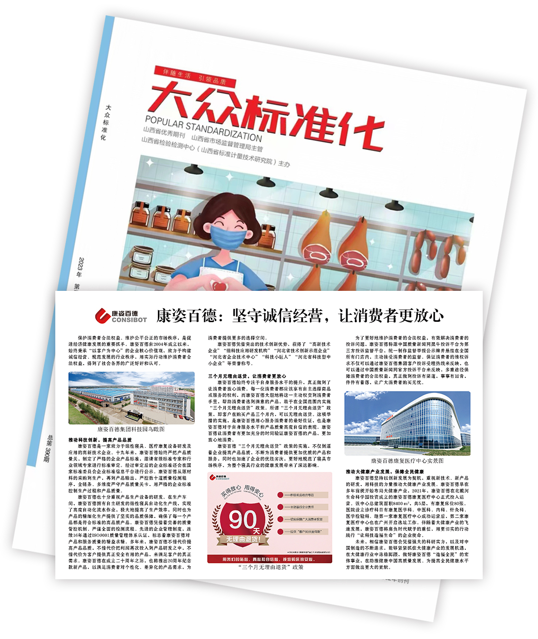 《大眾標準化》雜志—是山西市場監(jiān)督管理局發(fā)行的唯一期刊,也對康姿百德進行了報道。康姿百德現(xiàn)已連續(xù)4年榮登山西《大眾標準化》雜志。