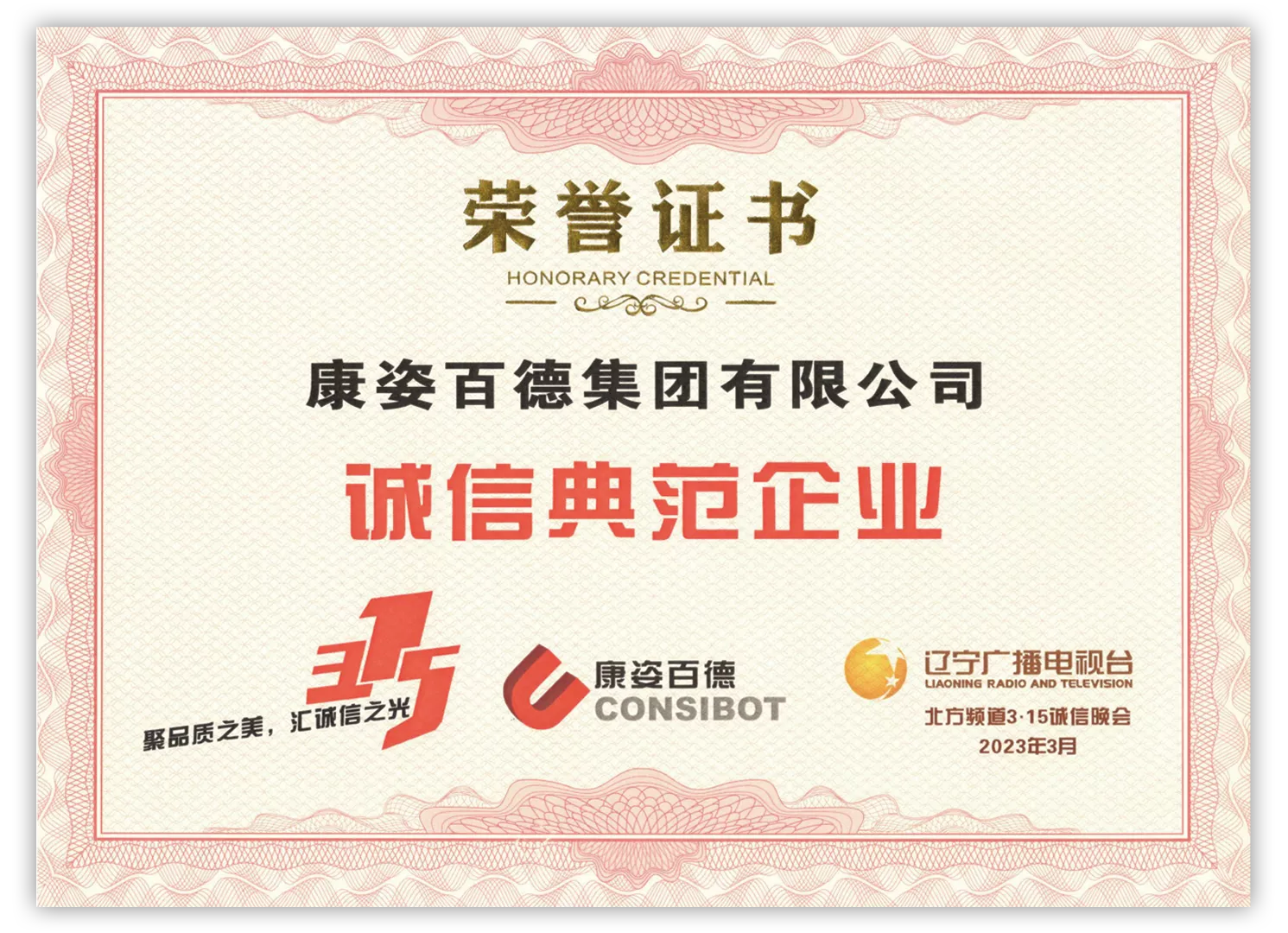 康姿百德榮獲“誠信典范企業(yè)”榮譽稱號