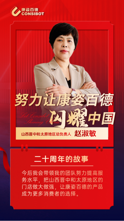 在康姿百德,有這樣一位榜樣人物。深耕大健康行業(yè)這些年,她始終心懷敬業(yè)精神,篤行致遠(yuǎn)。憑借著一腔熱情、勤奮努力、堅(jiān)持不懈和開拓創(chuàng)新,得到了廣大消費(fèi)者的認(rèn)可和信賴,她就是康姿百德山西晉中和太原地區(qū)總負(fù)責(zé)人——趙淑敏。趙淑敏經(jīng)理自2009年加入康姿百德已有15年的時(shí)間,親眼見證了康姿百德的飛速發(fā)展。