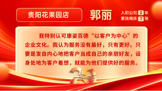 康姿百德20周年專(zhuān)賣(mài)店員工的系列故事會(huì)持續(xù)推出,讓我們一起期待其他地區(qū)專(zhuān)賣(mài)店員工代表的精彩故事吧!