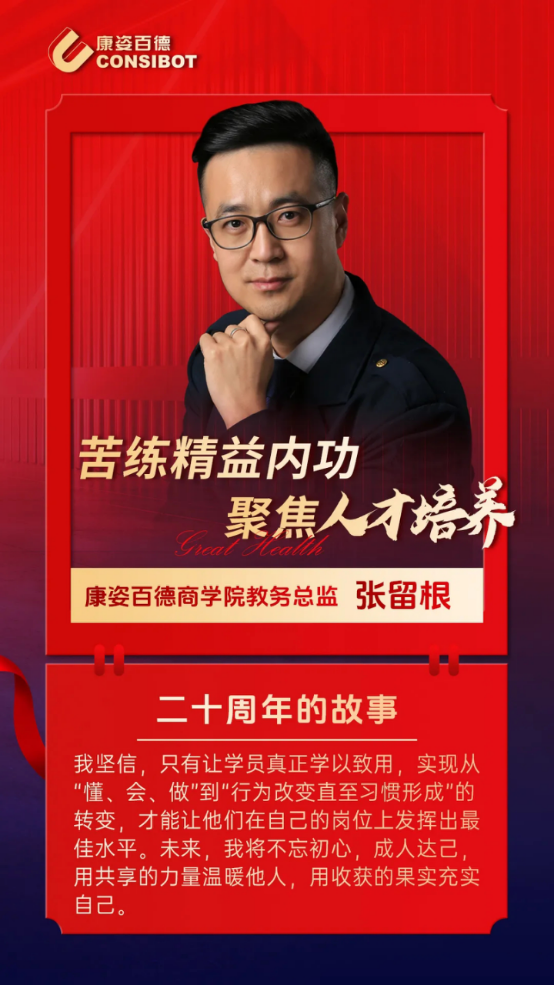 今年是康姿百德集團成立20周年。在20年的發(fā)展歷程中,涌現(xiàn)出一大批在經(jīng)營管理、原料采購、品牌宣傳、暖心服務(wù)、人才引進和培訓(xùn)等各個領(lǐng)域立足崗位、奉獻(xiàn)建功的優(yōu)秀代表。讓我們一起看看這些榜樣故事。本期帶你走進康姿百德商學(xué)院教研總監(jiān)趙勝男、教學(xué)總監(jiān)沈劍坤和教務(wù)總監(jiān)張留根。