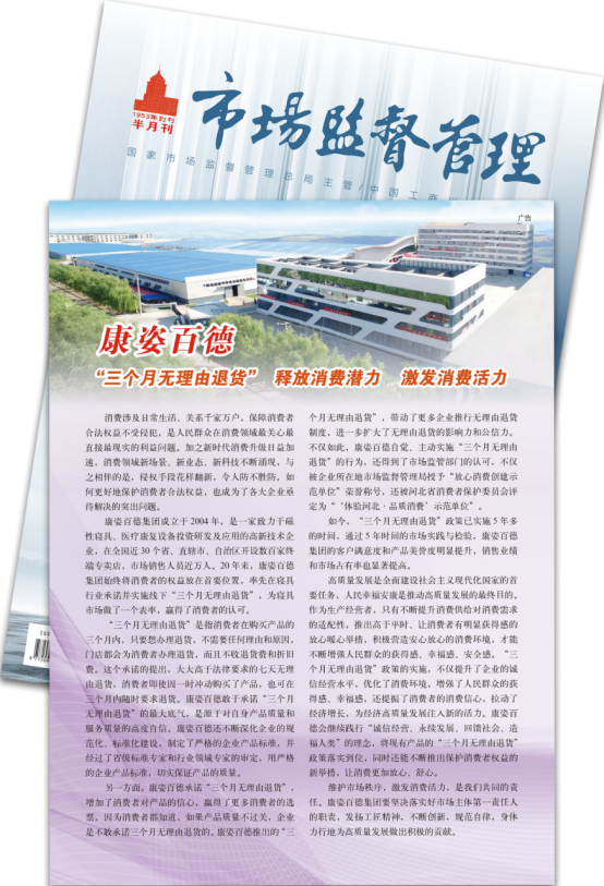 12月15日,《市場監(jiān)督管理》半月刊再次以《康姿百德“三個月無理由退貨”--釋放消費潛力 激發(fā)消費活力》為題,全面、詳細(xì)地報道了康姿百德。