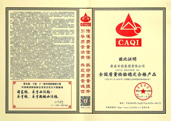 康姿百德集團榮獲“全國消費者質(zhì)量信譽保障產(chǎn)品”、“全國質(zhì)量檢驗穩(wěn)定合格產(chǎn)品”榮譽稱號