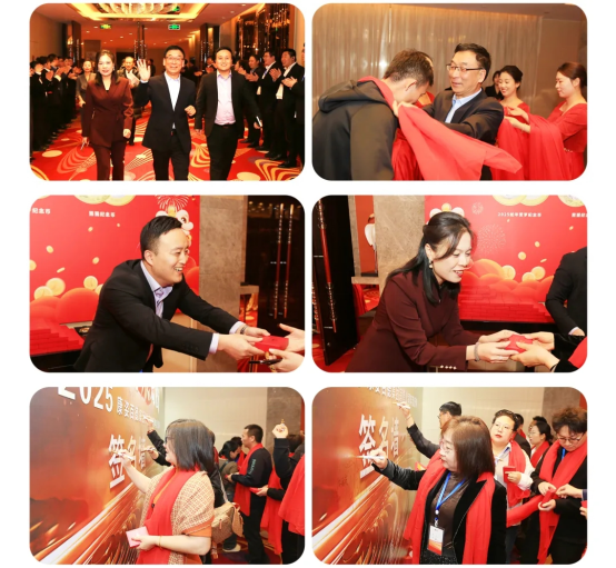 在璀璨燈光下,銷(xiāo)售精英們臉上綻放著溫暖的笑容。踏著紅毯,家人們意氣風(fēng)發(fā)地邁向星光大道。公司領(lǐng)導(dǎo)將精心準(zhǔn)備的伴手禮送到每個(gè)參會(huì)家人的手里,并給家人們戴上象征“鴻運(yùn)當(dāng)頭”的紅絲巾。簽名墻上龍飛鳳舞的每一筆都飽含豪情,攝影師鏡頭定格的每個(gè)笑臉都凝結(jié)著團(tuán)隊(duì)榮耀的瞬間。