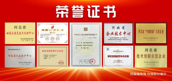 康姿百德的科研能力獲得了社會各界的認可,被授予“高新技術企業(yè)”“磁科技應用研發(fā)機構(A級)”“河北省企業(yè)技術中心”“河北省技術創(chuàng)新示范企業(yè)”“河北省工業(yè)設計中心”等多項榮譽和資質。